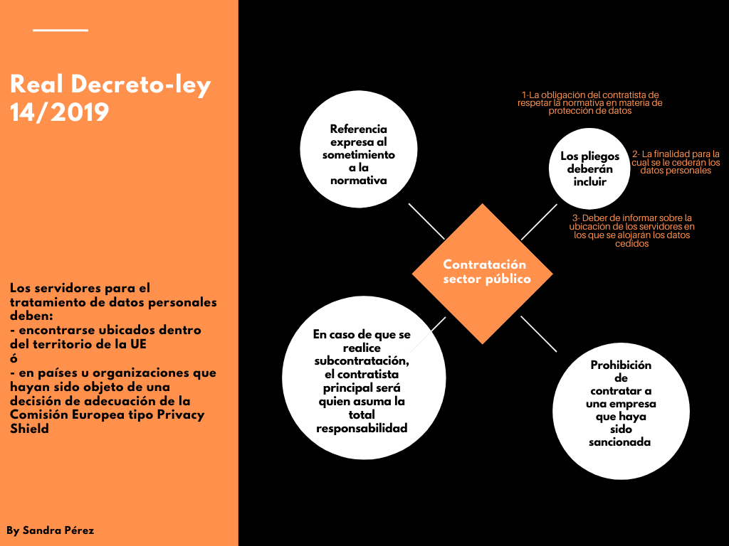 El pasado 5 de noviembre de 2019 se publicó en el BOE el Real Decreto-ley 14/2019, por el que se adoptan medidas urgentes por razones de seguridad pública en materia de administración digital, contratación del sector público y telecomunicaciones. Entró en vigor al día siguiente de su publicación e incorpora novedades que deben ser tenidas en cuenta por las administraciones públicas a la hora de contratar servicios a entidades que tratarán datos personales y a no trabajar con servidores ubicados fuera de la UE.